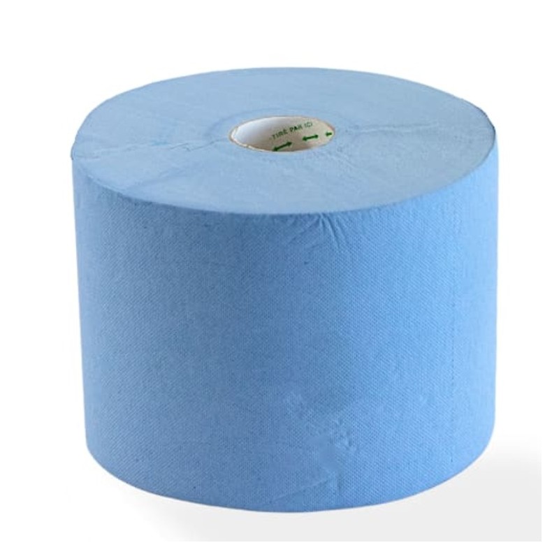 Bobina de papel azul de 20 x 29 cm, 2 capas moleteadas, desenrollador central o desbobinador clásico, contacto alimentario, fabricación italiana
